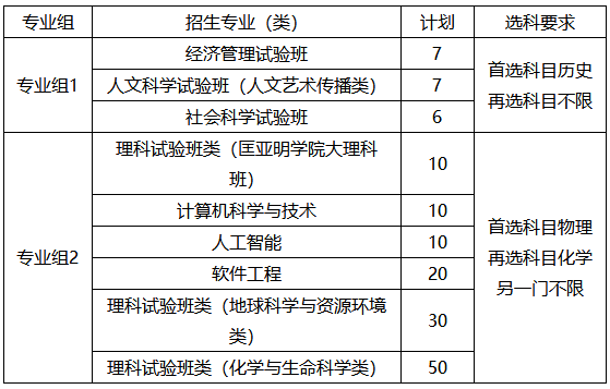 2021年我校综合评价招生人数不超过150人,招生专业(类)和计划如下: